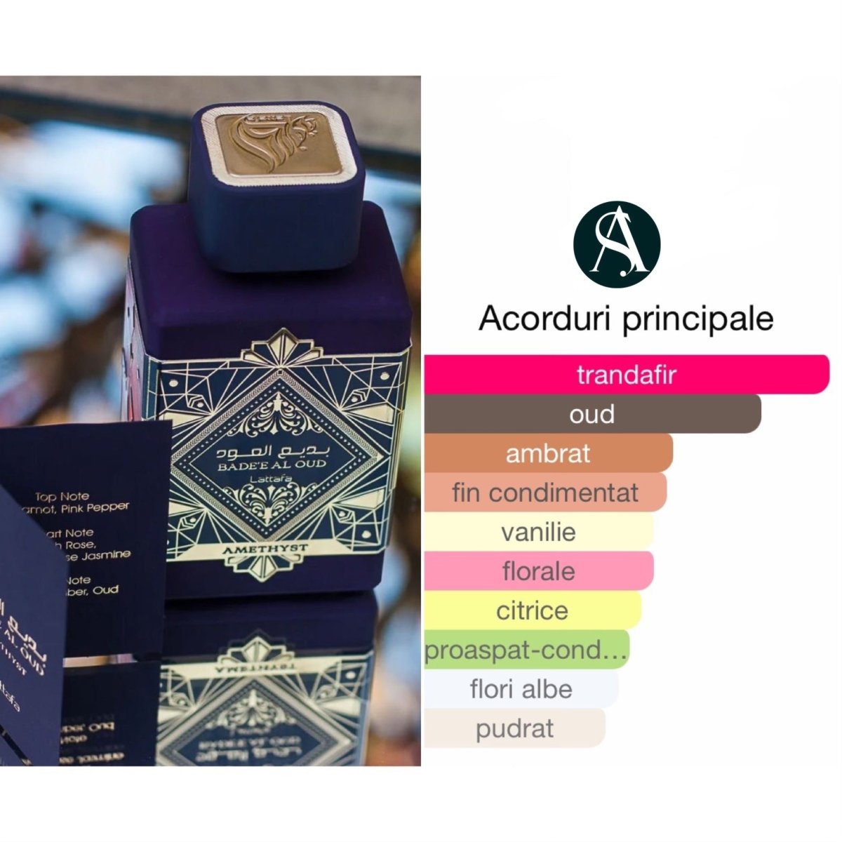 Lattafa Amethyst este un parfum arabesc unisex care cucerește prin farmecul său sofisticat și aroma intensă, inspirat de universul luxului oriental din colecția de parfumuri arabești autentice. Creat pentru iubitorii de parfumuri elegante și rafinate, acest elixir olfactiv îmbină dulceața fructelor cu profunzimea notelor lemnoase și condimentate, oferind o experiență senzorială completă și memorabilă.