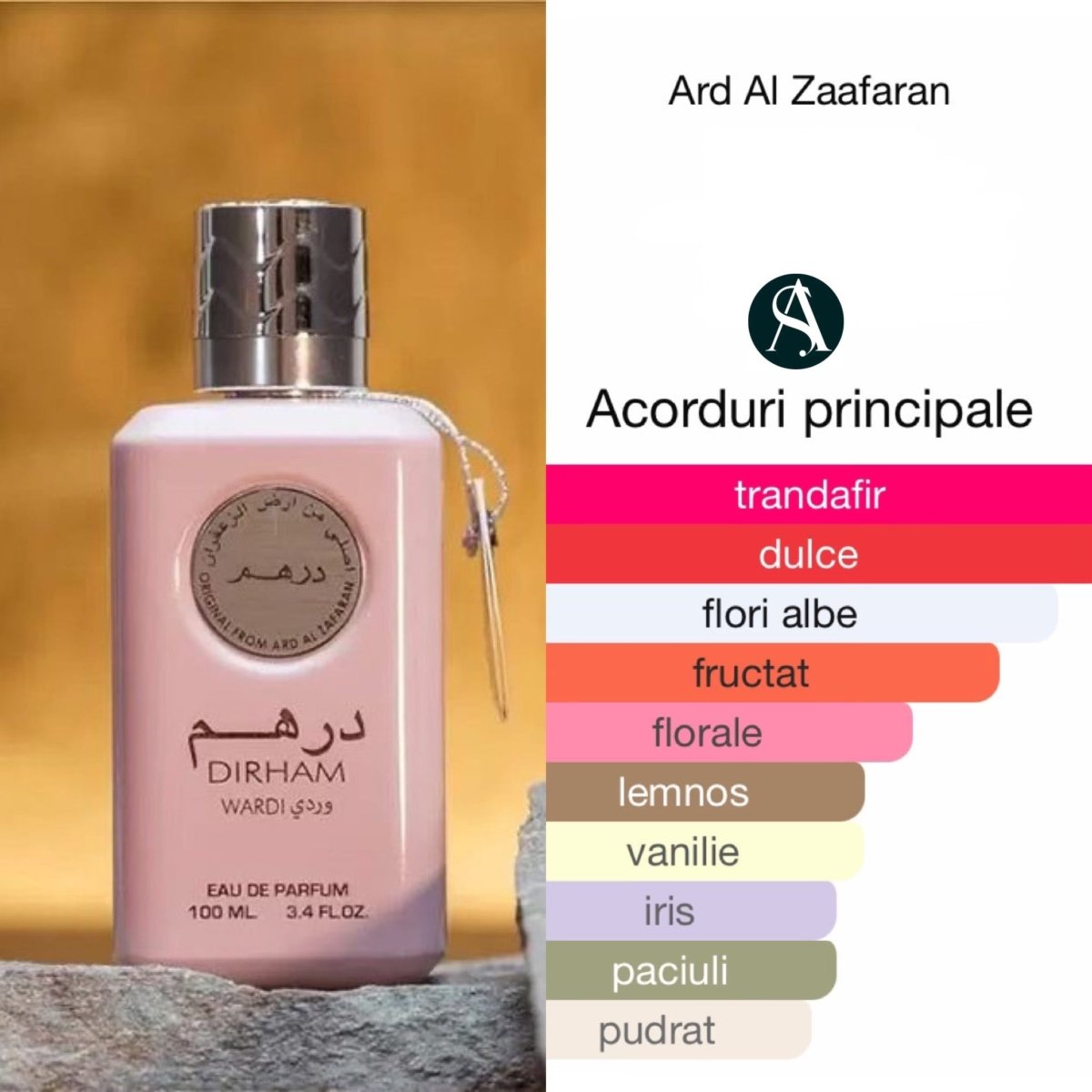 Dirham Wardi reinterpretează eleganța clasică a parfumurilor florale într-un stil arabesc modern și echilibrat. Cu o dulceață rafinată și note cremoase de vanilie, oferă o prezență feminină, caldă și plină de farmec, potrivită pentru orice moment al zilei.