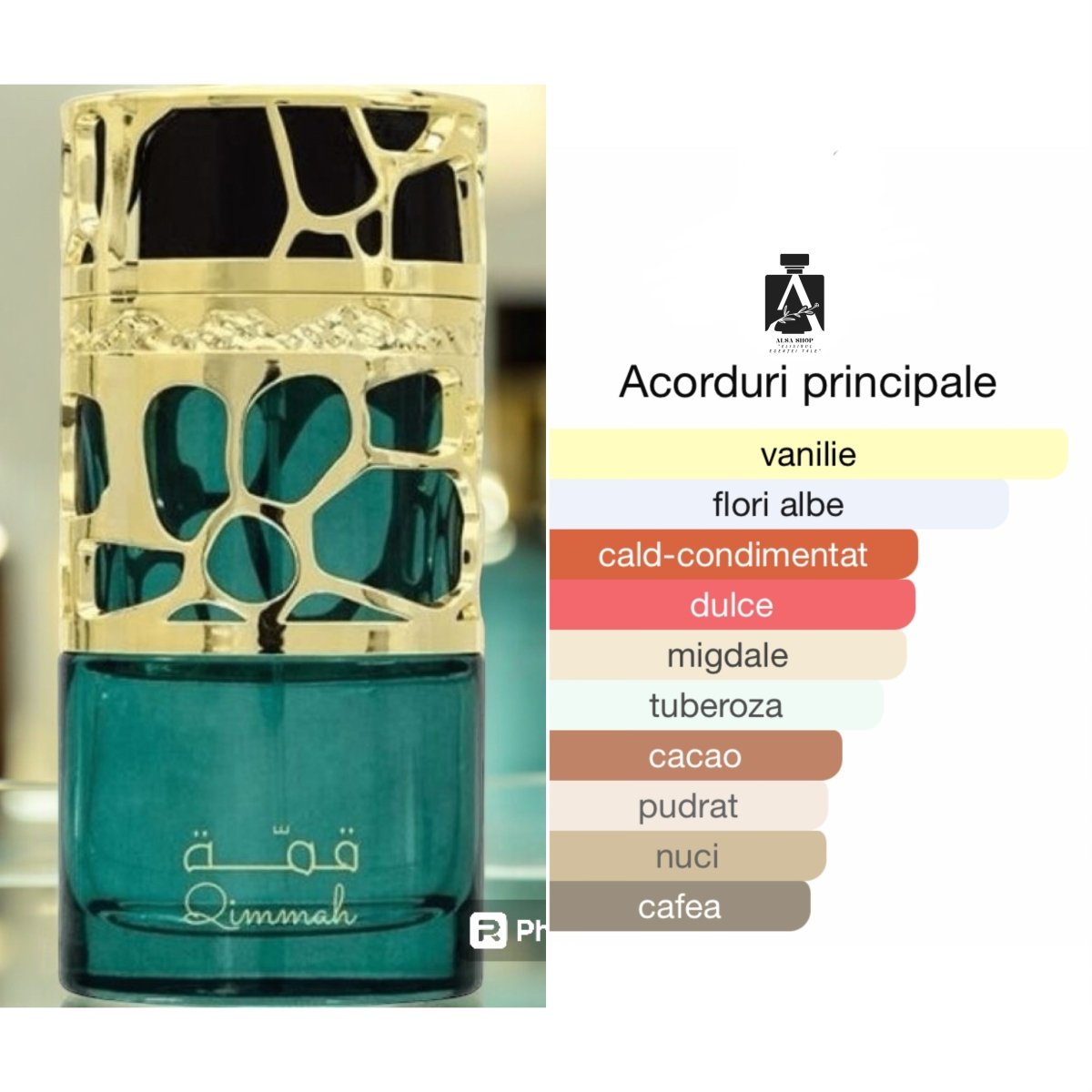 Qimmah de la Lattafa este o creație olfactivă rafinată ce îmbină eleganța orientală cu misterul notelor florale și lemnoase. Este parfumul femeii sigure pe sine, care emană încredere, grație și rafinament fără a spune un cuvânt. Cu o persistență remarcabilă și un siaj sofisticat, Qimmah devine alegerea ideală pentru serile speciale sau momentele în care vrei să te simți cu adevărat memorabilă.